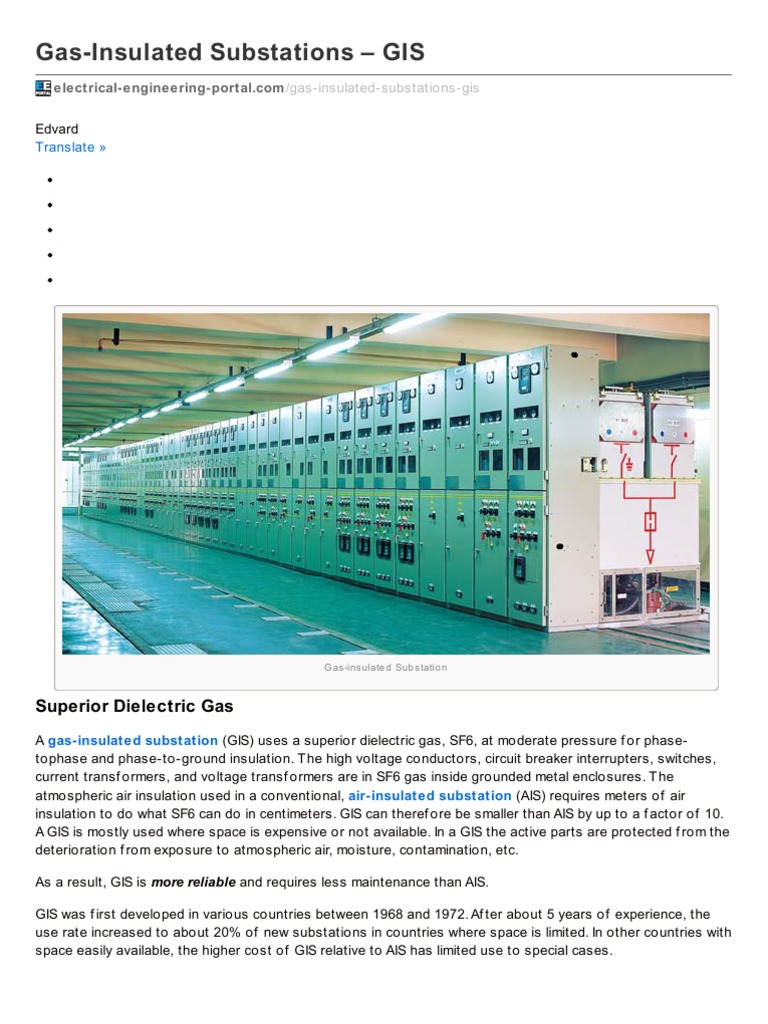 Substations deployed had air-insulated switchgear (AIS). The development focus ered the world’s first substation with gas-insulated switchgear (GIS). With GIS the footprint of substations can be reduced by about 60 percent, by housing all pri-mary conductors within earthed SF 6 gas- ... Access Document